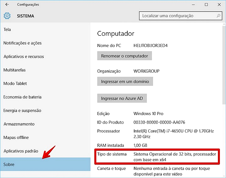 Passo – 01: Descobrir se o PC é 32 ou 64 bits no Windows 10