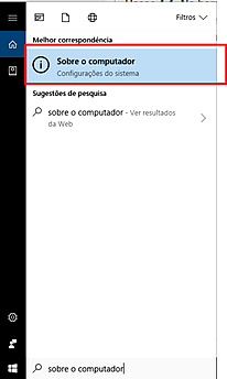 Passo 1.1. Na barra de pesquisa digite “sobre o computador”;
